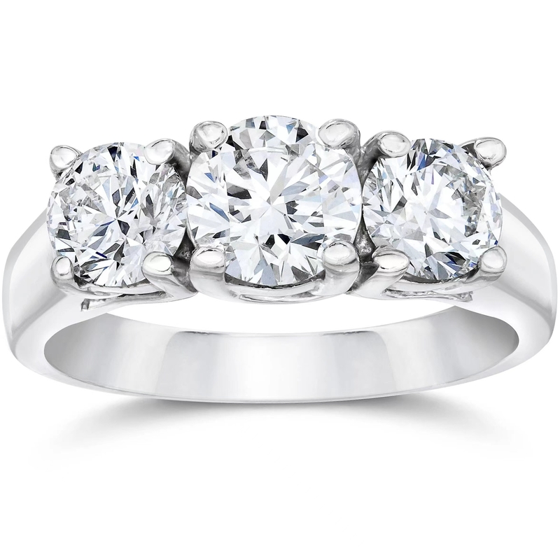 Diamante cultivado en laboratorio Joyería estilo clásico Tres piedras blancas de forma redonda Anillos de compromiso Anillos de boda anillo redondo de diamante para fiesta y aniversario.