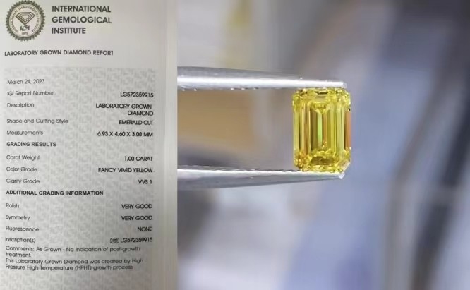 Esmeralda diamante suelto, amarillo vivo y elegante, VVS-VS, excelente, certificado IGI