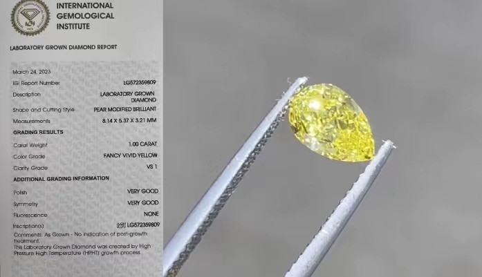 Diamante de peras sueltas, amarillo vivo y elegante, VS1, excelente, certificado IGI
