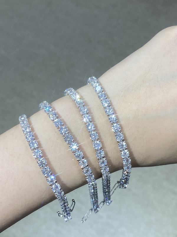 Brazalete de diamante de laboratorio, el brazalete conBlanco redondoDiamantes de tamaño pequeño alrededor, pulsera de tenis para decoración, fiesta, cumpleaños, regalo y aniversario.