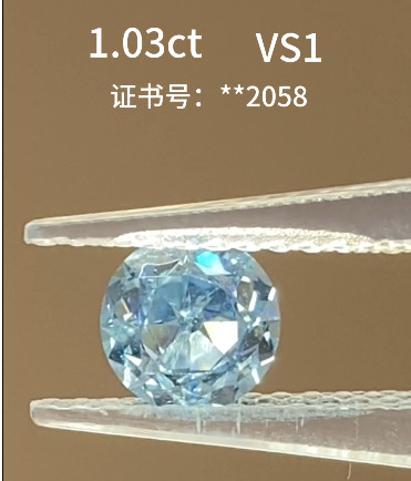 Diamante de laboratorio azul redondo, VS1, excelente con certificación IGI