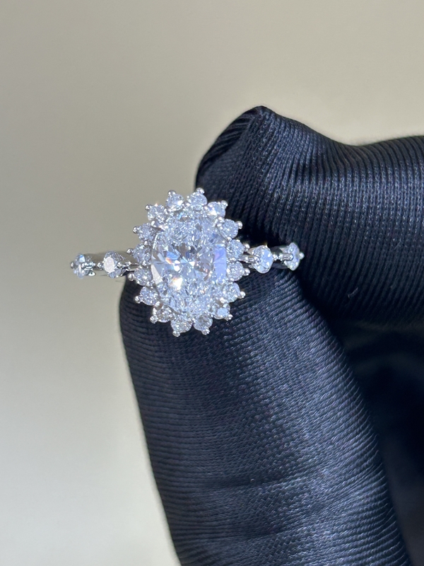 Anillo de diamante de laboratorio de forma ovalada Anillo de diamante blanco con anillo de halo