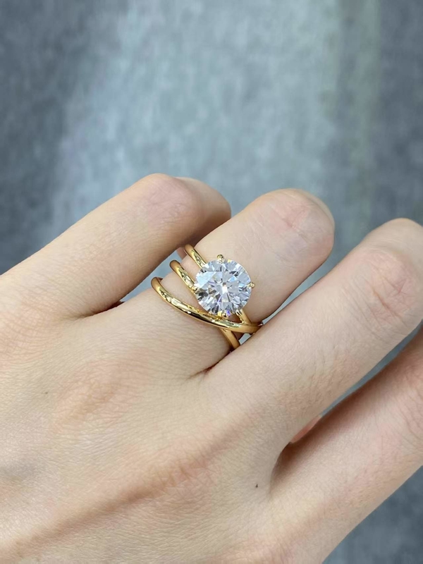 Diseño único Corte redondo Anillo de diamante de laboratorio 18k Oro amarillo Moderno