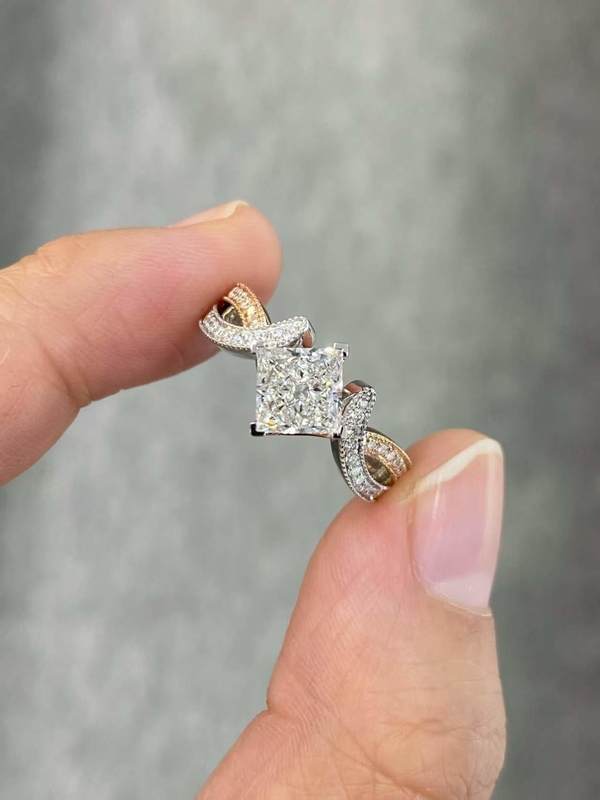 Anillo de compromiso de oro blanco y rosa de 18K con diamante blanco de laboratorio con corte princesa de 1,2 quilates
